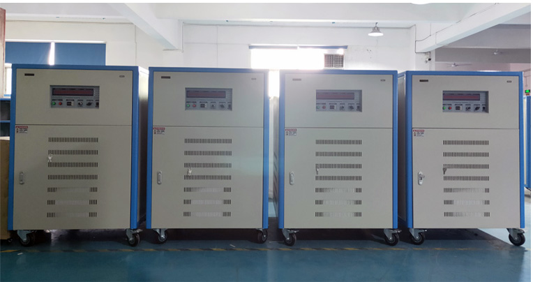 60KVA三相变频电源,基本的参数是这样的,输入电压一般是三相五线380V输入(三根火线+零线+地线),输出是三相五线0-520V(三根火线+零线+地线),输出频率40-400Hz可调,客户向我司订购的4台60KVA三相变频电源,目前已经完成了所有的各项性能测试,准备出货至四川,这个客户是做医疗设备产品,现需要变频电源为其产品供电,客户也是第三次向我们深圳市恒鑫隆科技有限公司订购变频电源了,再次感谢客户对我们产品的信赖和支持!
