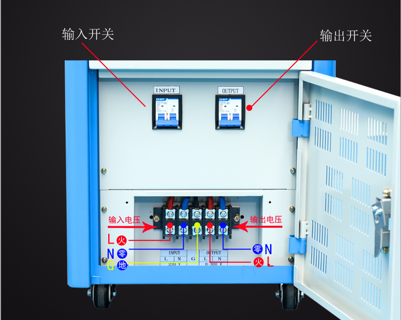 3KVA单相变频电源出厂时,都贴好识别的标签,将变频电源正面的门锁打开后,就是变频电源的输入端和输出端接线端子,标签分别标识变频电源的输入电压和输出电压,用户只需要按照3KVA变频电源标准的配线,将市电的输入电压正确连接到变频电源的输入端,输出端接好负载产品,确认无误后,即可正常的上电启动变频电源,如有疑问可以来电0755-28182855咨询,谢谢!