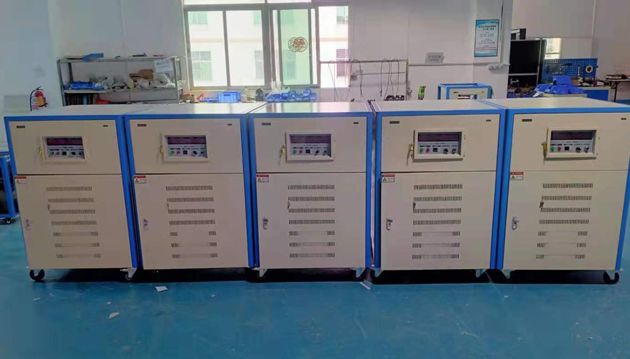 广州客户工厂是专门做电器产品的厂家,由于接到了国外客户的订单,将要对出口的豆浆机进行测验,因世界各国的电压和频率是有所不同,所以豆浆机出口前要把国内电压220V或者380V/50HZ转变成美国110V/60HZ电压和频率来进行检测豆浆机是否合格。 由于客户的豆浆机产值很大,分不同的产线进行出产和测验工作,所以订购了5台60KVA三相变频电源,为出口电器产品测验,供给安全安稳的用电需求。