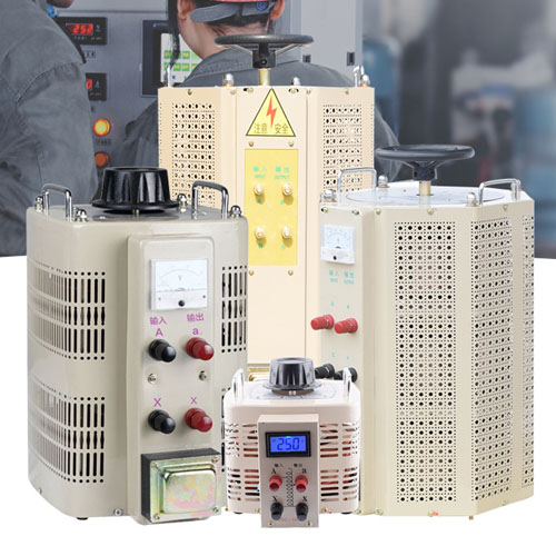 接触式调压器实质上是一种输出(端)电压可以调节的自藕变压器,其铁心有环式与柱式两种。柱式铁心与一般变压器相似,用硅钢片叠成,环式铁心则用硅钢带卷成。在环式自耦调压器的结构中,绕组用绝缘铜线单层绕在环式铁心上。线圈部分表面磨去绝缘层而成光滑平面,用铜石墨复合做成的碳刷与它相接触。碳刷可借手轮在导线表面旋转滑动,从而改变输出电压。电流容量大于10A者,有用两个或多个碳刷并联的。自藕调压器一般都制成自冷、干式。在容量特别大或使用环境特殊的场合,也有制成油浸自冷式,电动风冷式,3个环式单相自藕调压器共轴配装,即可构成三相自耦调压器。